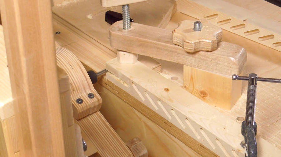 So I made a piece of wood to both act as a hold-down, and to keep my