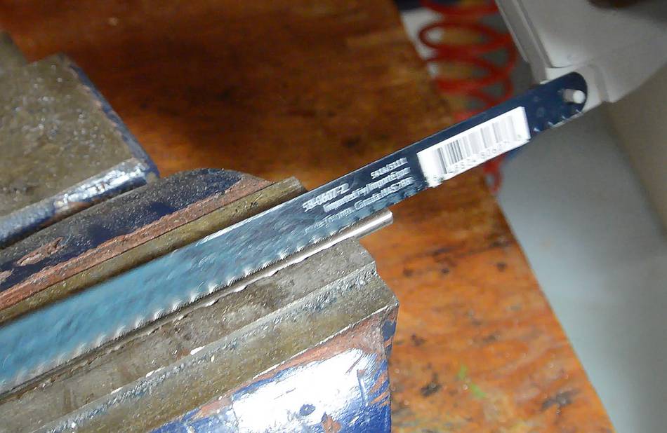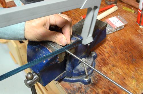 Cutting up some pieces of 3/16" (5 mm) steel rod for the pivot pins.