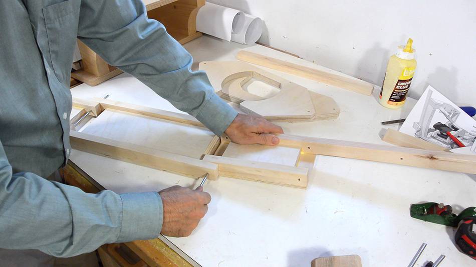 Getting the location for the front mount. I used two scraps of 18 mm birch