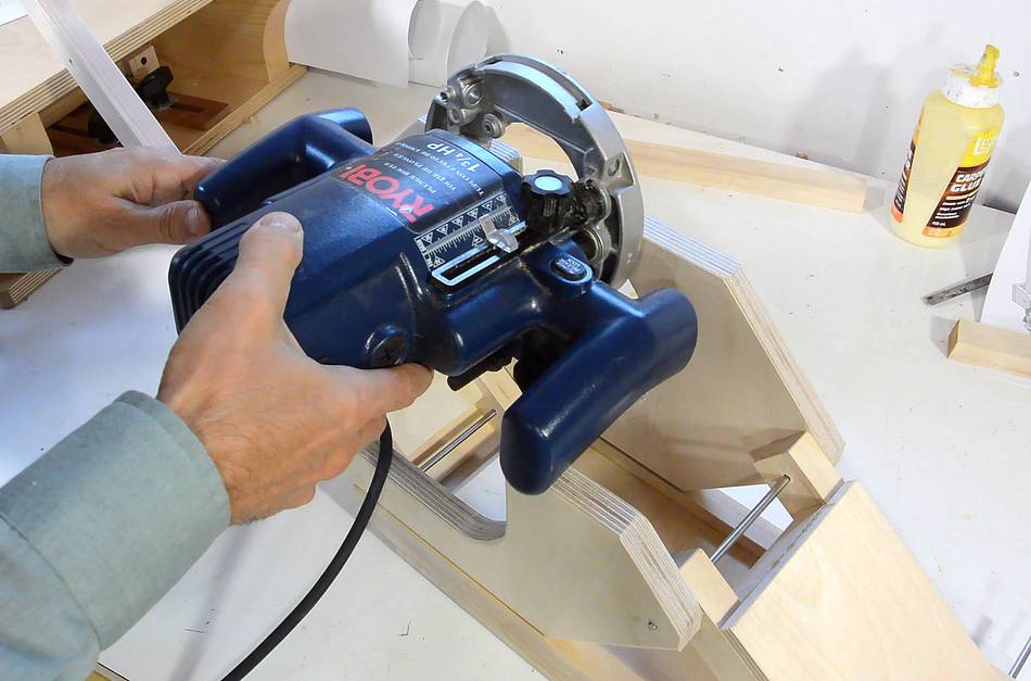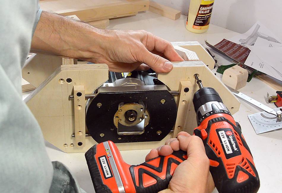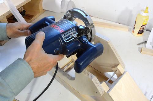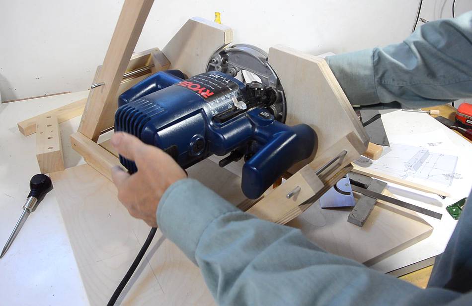 of wood below the router mount to limit the tilt to just over 30 degrees