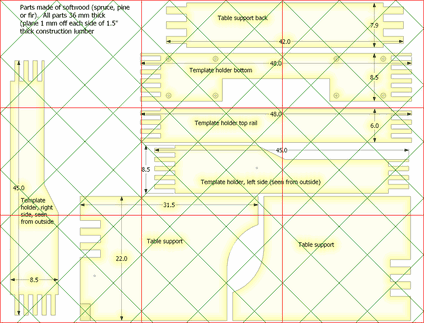 The plans contain 1:1 drawings of all the parts for use as a cut list,
