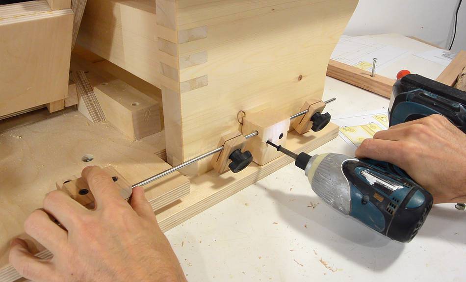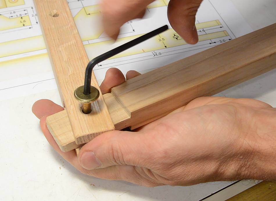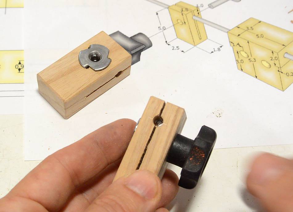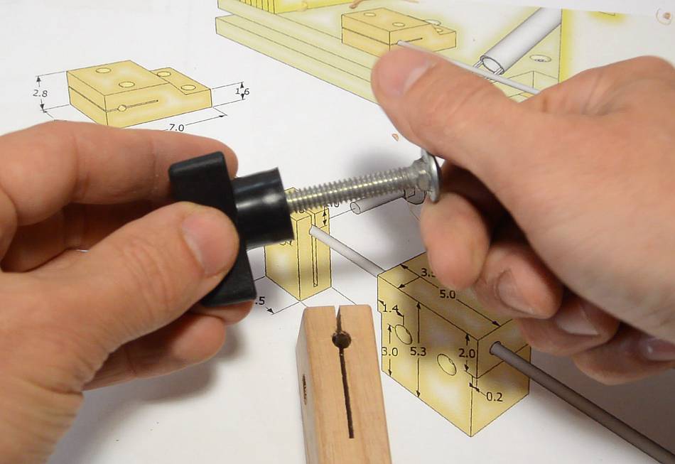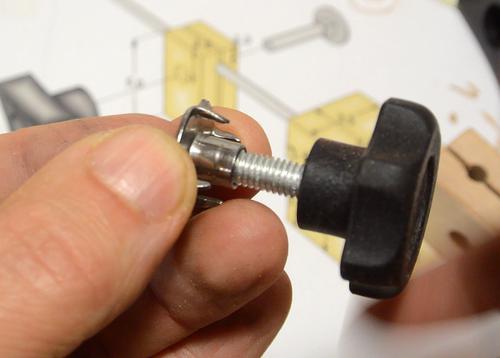 In the plans, I have a 1/4" (M6) carriage bolt and threaded knob to clamp
