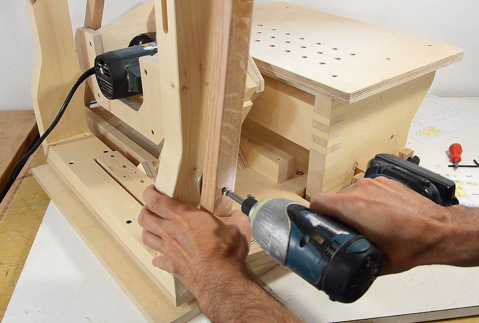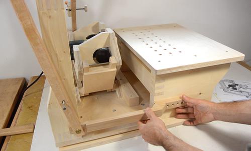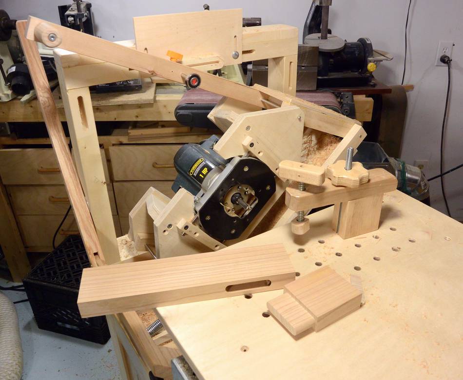 provides a 2:1 advantage, lifting up the router by the operating lever
