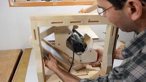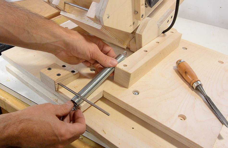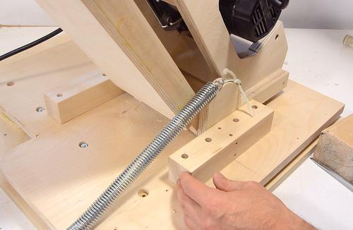 I had to carve out a notch to make room for it. I moved the shaft for the depth stops a bit higher in the plans, so you shouldn't need to carve a notch to make room for the spring.