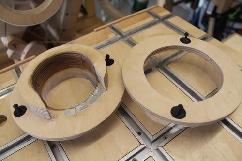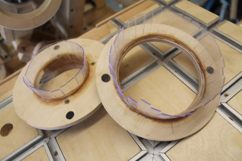 Next I built some dust hood rings. They are wooden rings with 1 mm thick