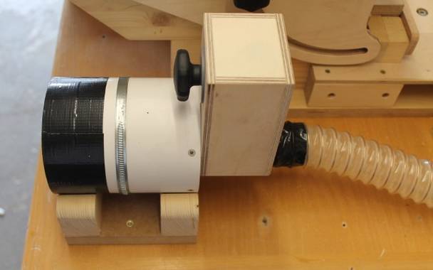 A rectangular aluminium tube is used to build the shaft where the dust hose