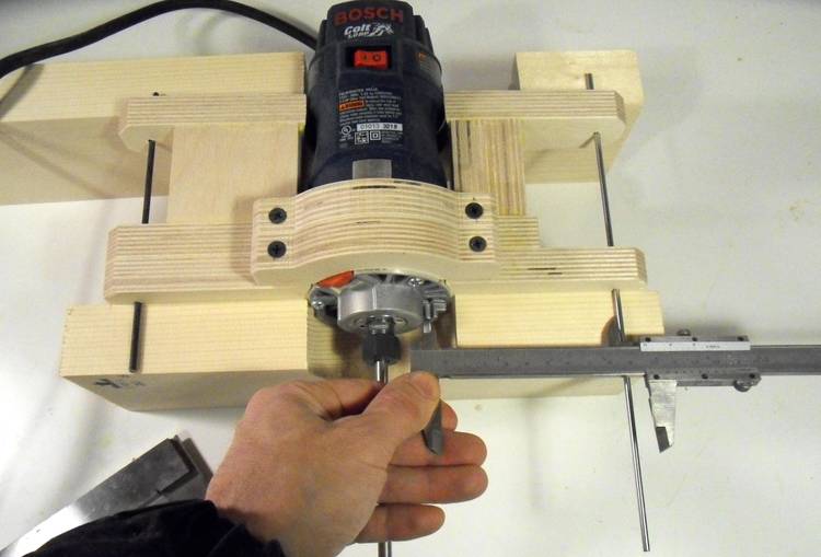 Checking the router lateral position against shafts on either side. This measurement is just