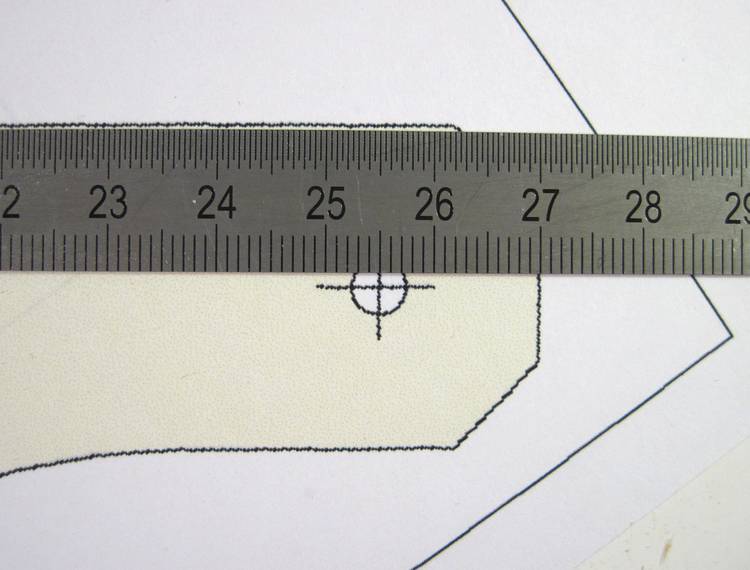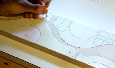 The first thing I did was to transfer the center marks for the mounting holes with an awl. Having made sure my print scale was exactly right, I could now trust these to be accurate. The center marks are really important, so best to transfer them before there is any risk of messing up the templates. But don't drill the holes right away - that might mess up the templates.