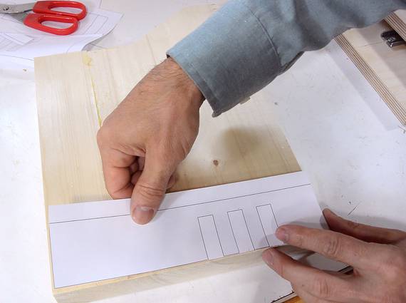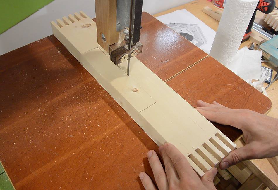 Cutting the fingers. First cutting the horizontal pieces, cutting the