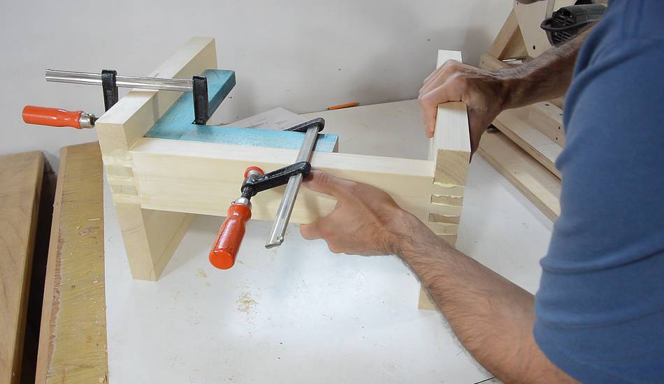 I also glue a strip of wood to the top, which gives me more room for clamping