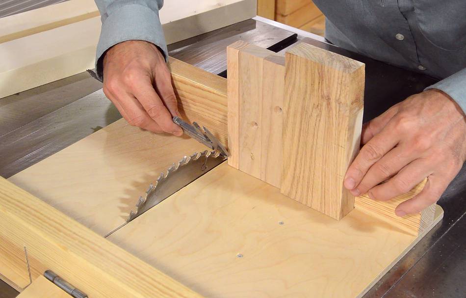 a 45-degree cut on the table saw, then chip out the rest with a chisel.