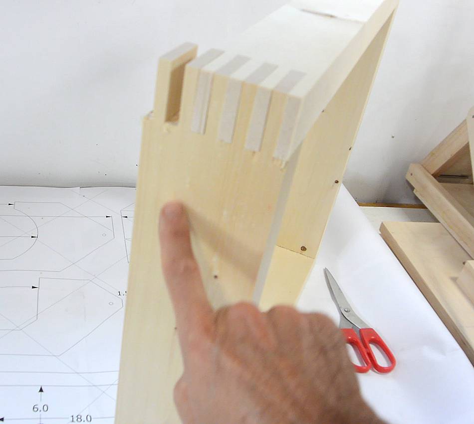 Having cut the joints, the fingers were too wide to fit, so I positioned the stop block to shave half a millimeter off each finger, again using the spacers to position for each finger.