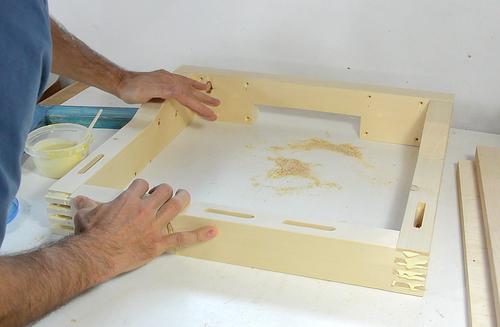 After putting it together, I leave the frame lying flat on the table, so that I don't accidentally introduce any twist with the clamps.