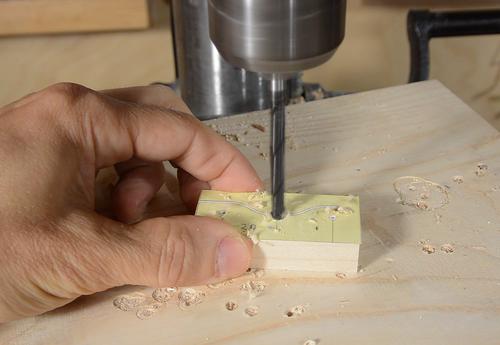 To make the work a bit easier, I hogged out some of the material by drilling a series of 1/4" holes where the slots need to go.