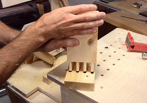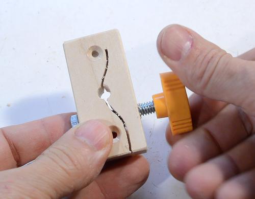 A hole goes through the side to allow a bolt and knob to squeeze the block