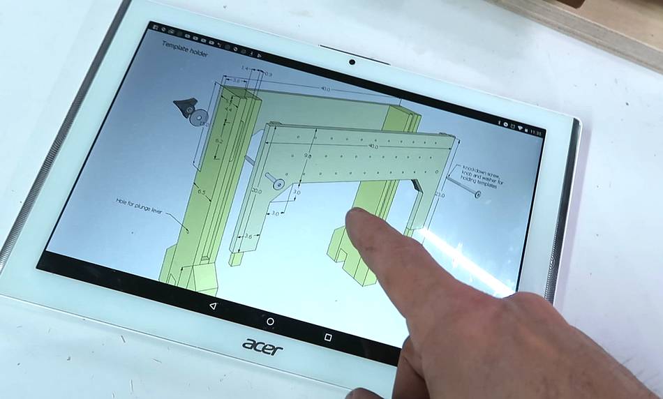 You can also see extra blocks clamped to the bottom of the template holder to give it a wider base.