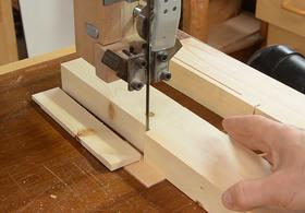 I then rough cut the piece that joins the two vertical pieces on the bandsaw.