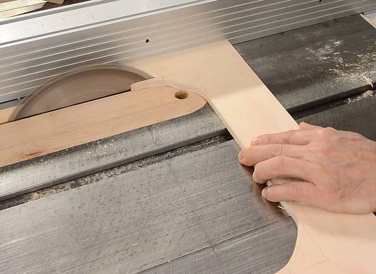 on the table saw without over cutting (because the saw blade doesn't cut vertically),