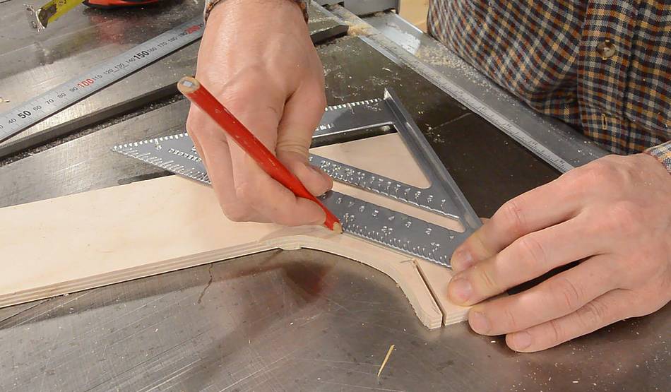 Marking the 45° corners, which I then cut on the bandsaw.