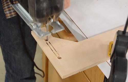 The piece of plywood needs two slots cut into it. I made a shallow plunge cut