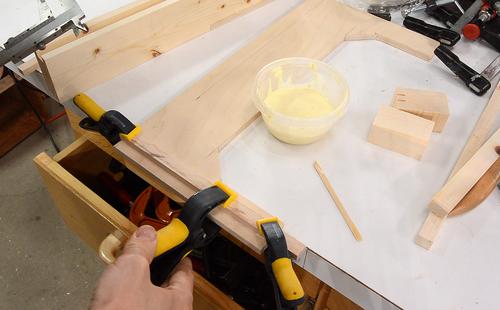 While the glue was drying on that, I glued some pieces of wood into the bottom end of