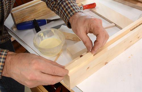 slide in the slots. I glued on one side, making sure it was parallel to the edge.