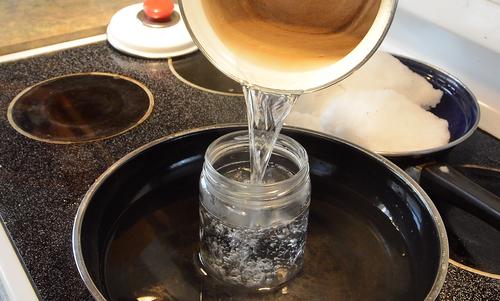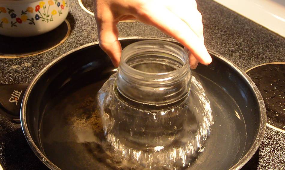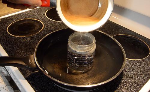 I did this with the jar standing in some warm water to avoid shocking the bottom too much. If you pour boiling water into a cold jar it's not unusual for the bottom to pop right off.