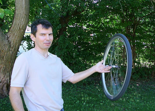 For example, if you spin up a bicycle wheel, and only support it on one side, rather than
