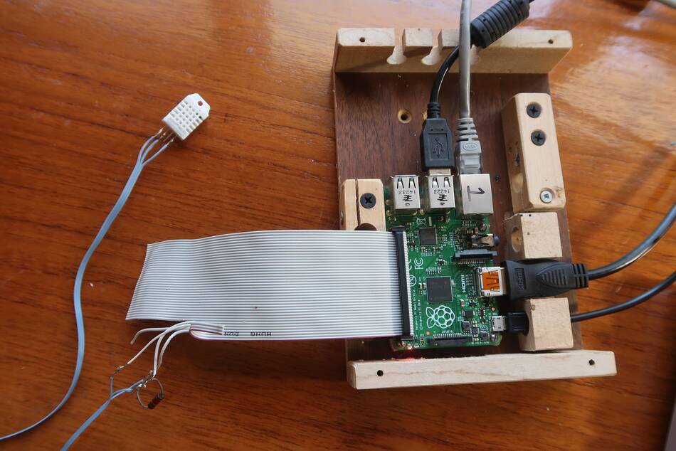 I bought a DHT22 temperature / humidity sensor and wired it up to a Raspberry Pi computer.