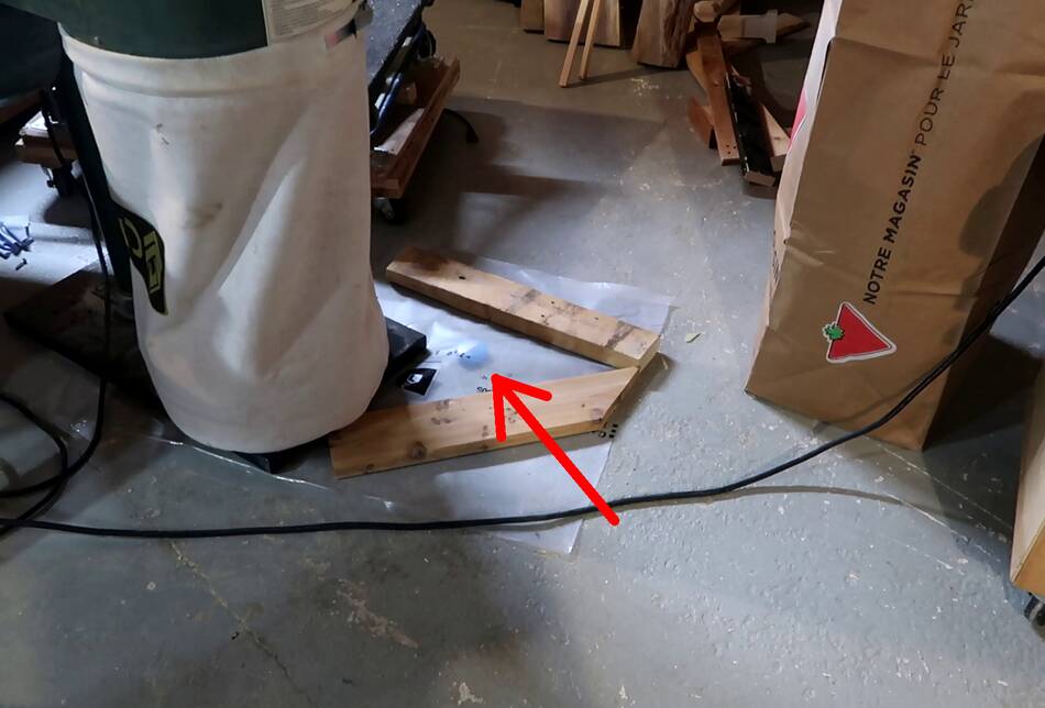 plastic down, with a cheap (and not very accurate) moisture meter under it.