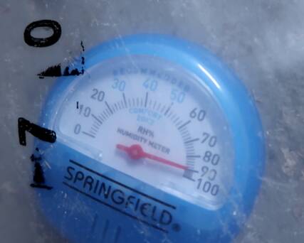 Even if I dried the air from 100% humidity to zero, I could not have captured that much water, and the humidity only dropped by 15%. So there are other sources of humidity.
