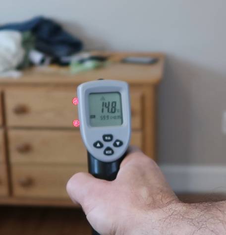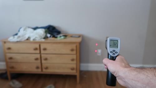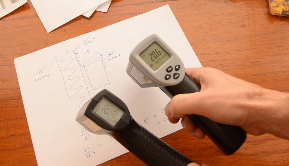 Using an infrared thermometer, I devised a way to measure the insulation R-value of the outside walls of the house.