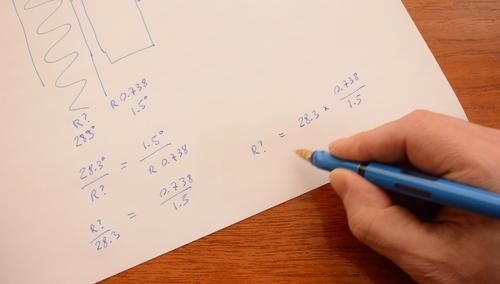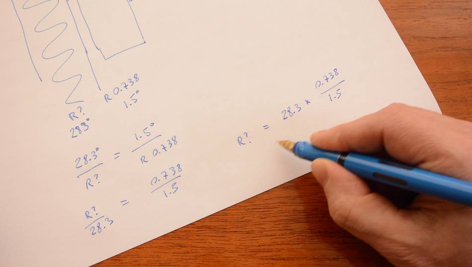 From this, we can solve for Runknown = R0.738 * 28.3° / 1.5° = 13.9