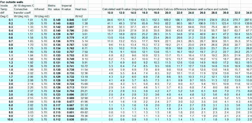 There is also a column for heat loss, measured in watts per square meter of wall, which allows you to calculate the rate of heat loss through the walls of your house.
