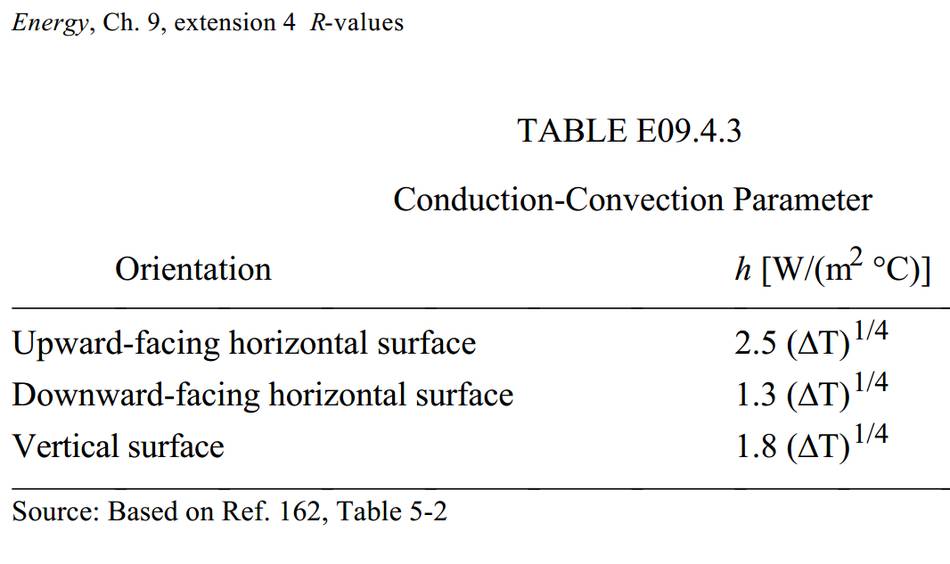 temperature. I used the formula for "vertical surface" at left, from