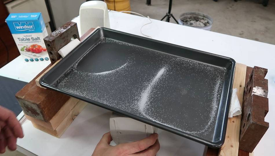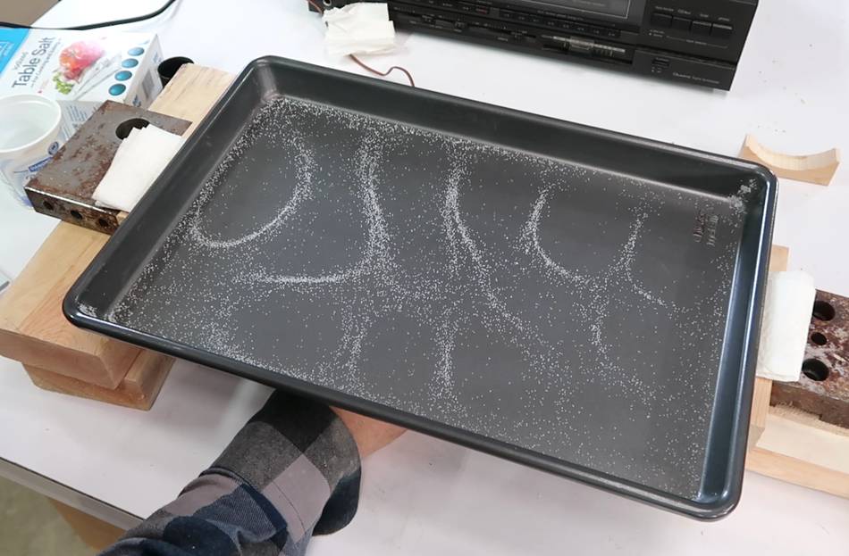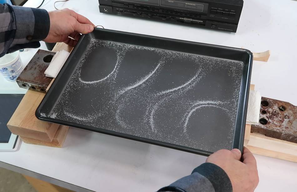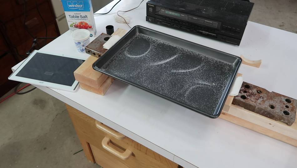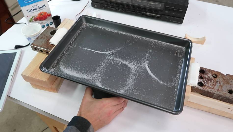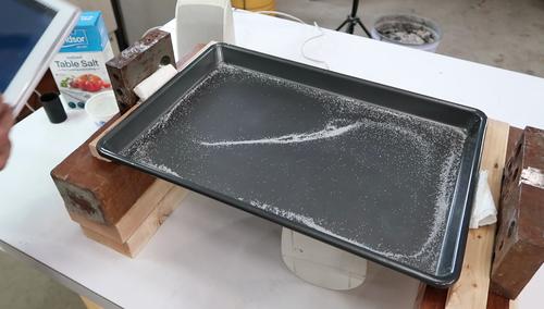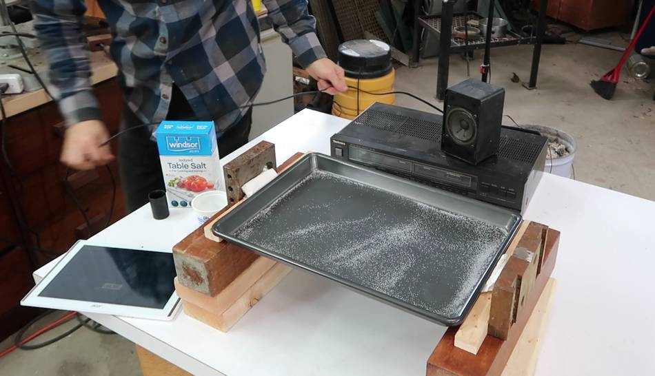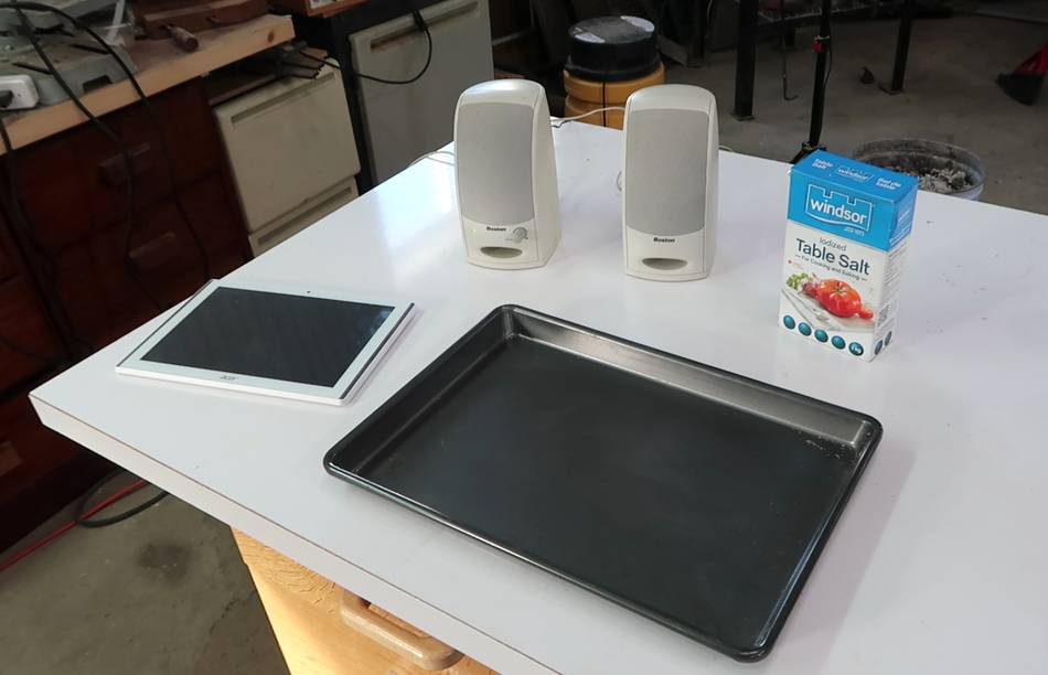 So instead of fancy equipment, I'm using a tablet computer, some computer speakers, a cookie sheet, and some salt.