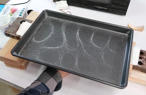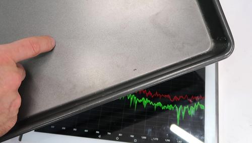I tapped the cookie sheet and watched the spectrum display to see which frequencies