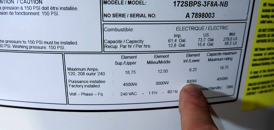 But if it starts to run out of hot water, the top element kicks in, and that's one is 4 kilowatts.