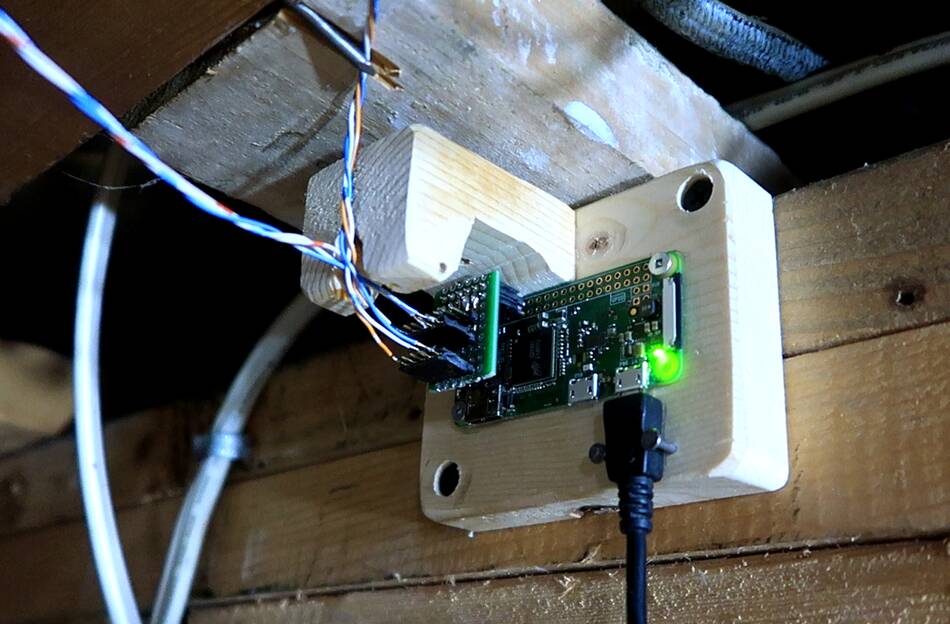 Here's a Raspberry Pi Zero-W mounted close to the ceiling. I made a small adapter