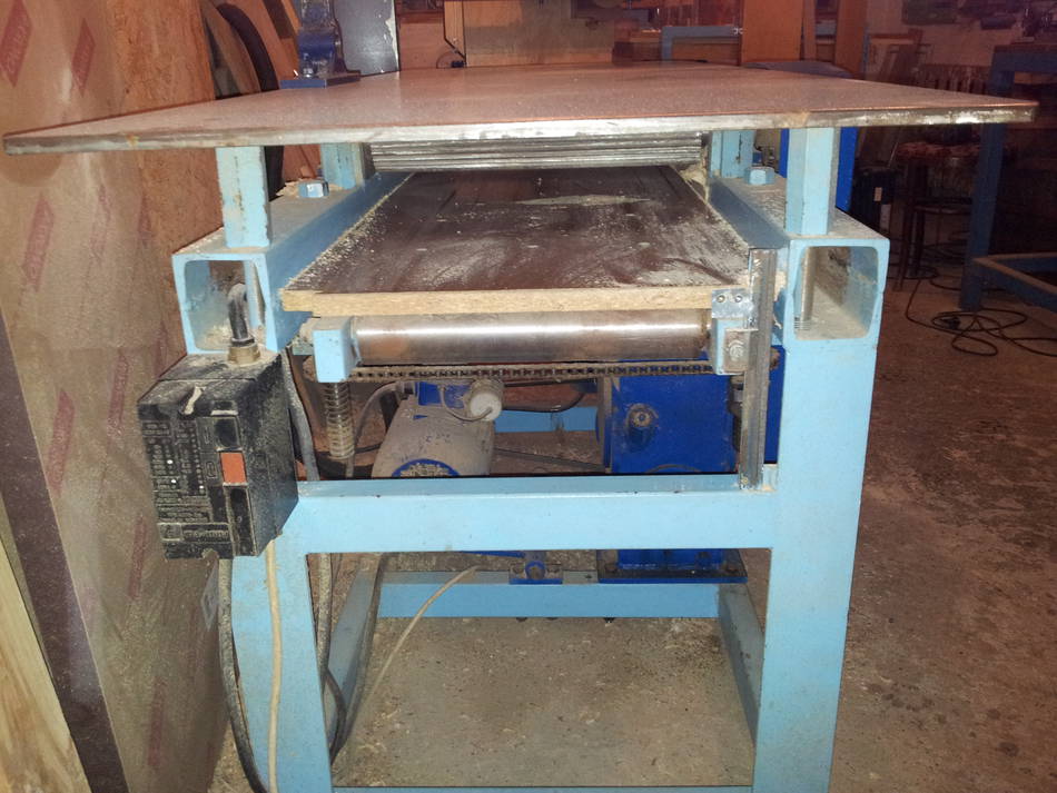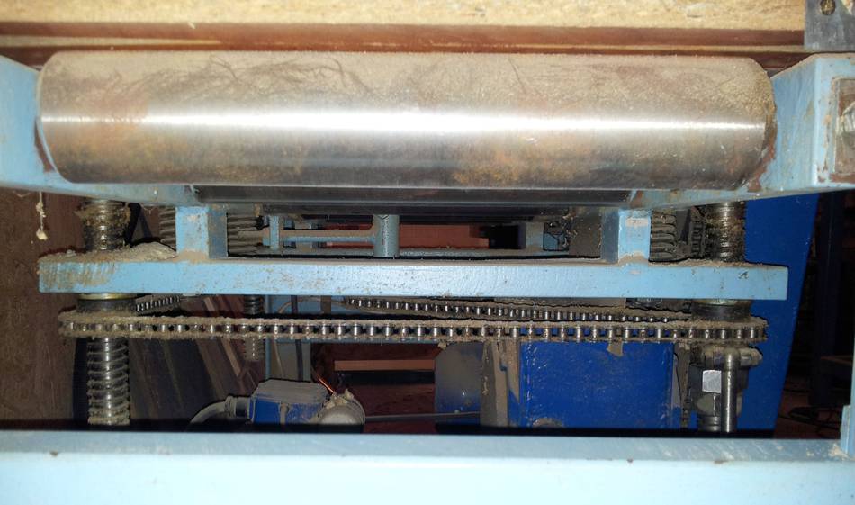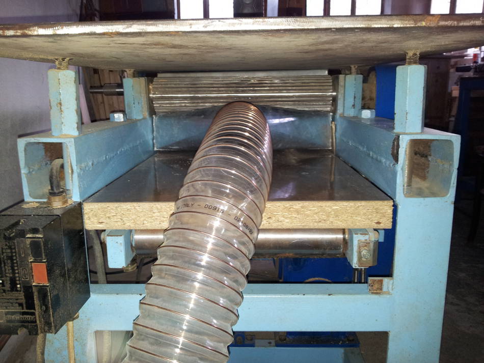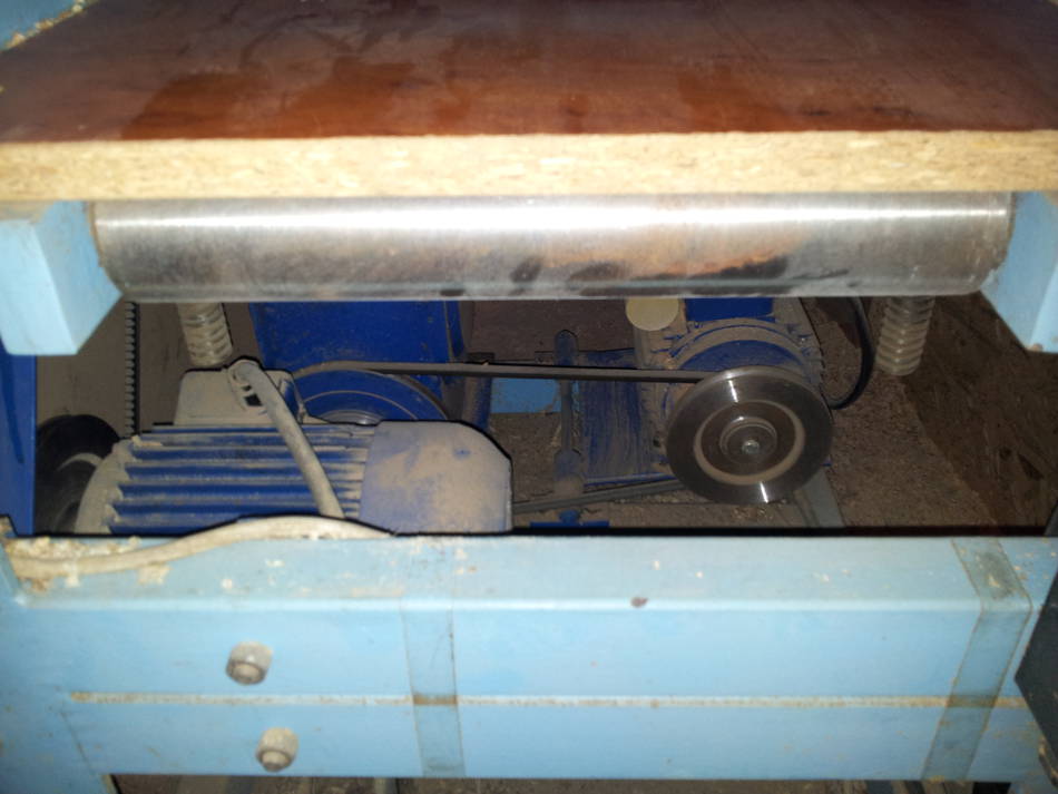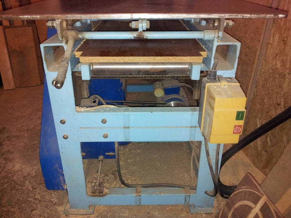 A thickness machine, working width up to 400mm, which is below the jointer table and which work in reverse direction of advance motion of the material.