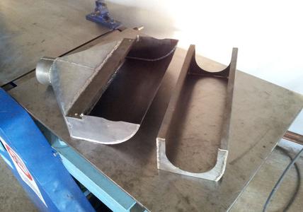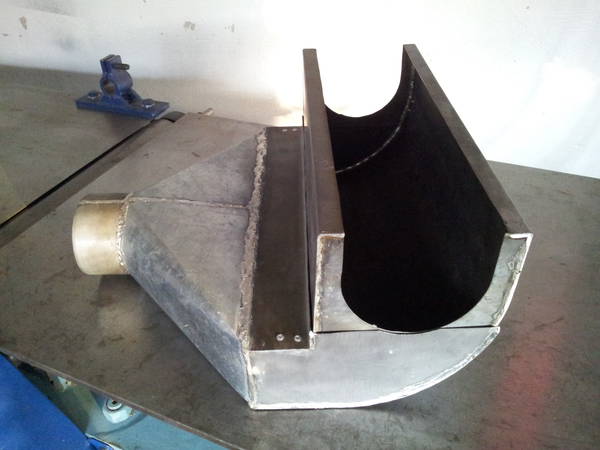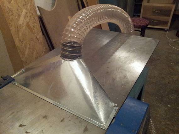 Making the collector for planer functioning mode was simple, it was basically a surface that make transition from rectangle to circle with offset and angle (used material was 0.3mm galvanized sheet) and a cylindrical connector (0.7mm galvanized sheet) for coupling the exhausting hose. The assembly was done with a 500 W electric soldering iron by Sn-Pb soldering alloy.
