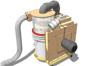 Smaller than a regular dust collector, quieter and lower power than a shop-vac.