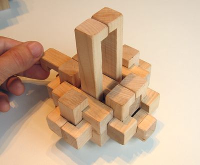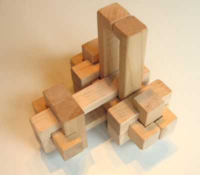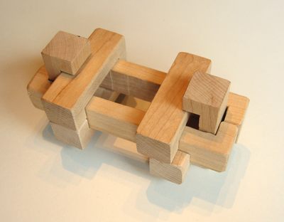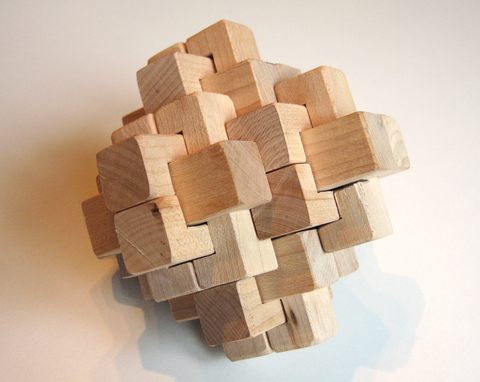 In its assembled form, the puzzle consists of six assemblies like the one shown at left.