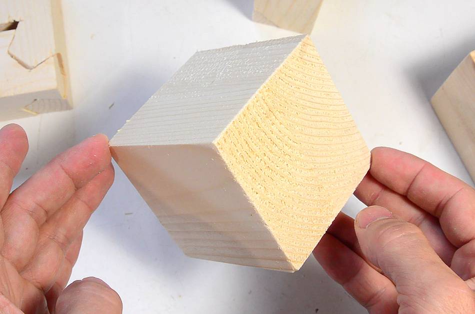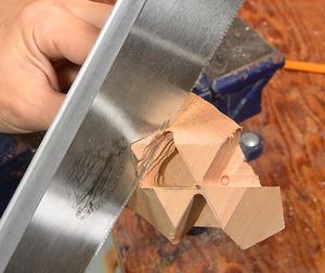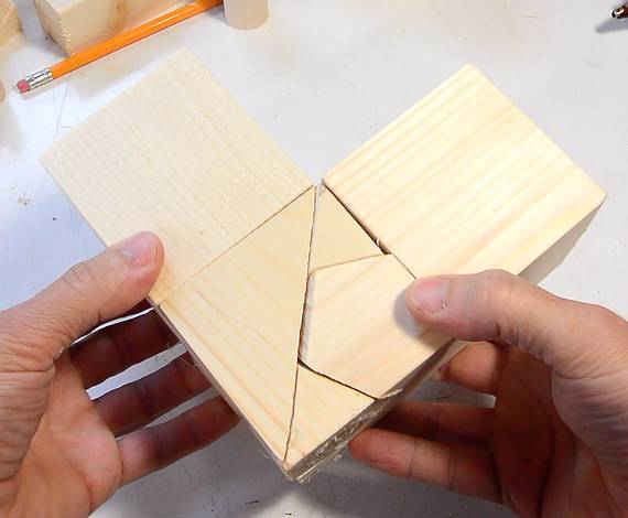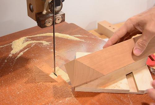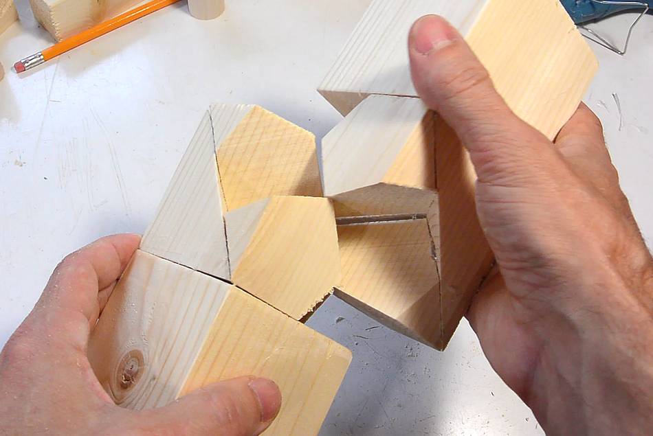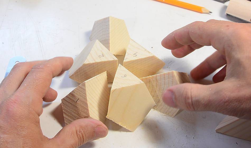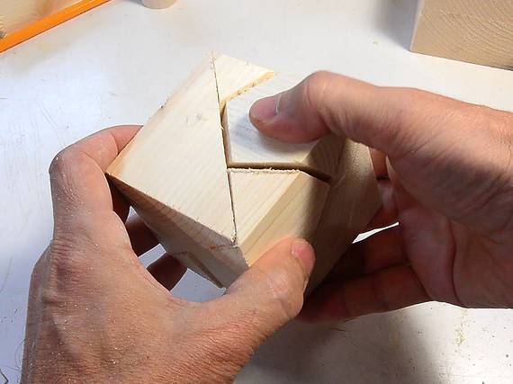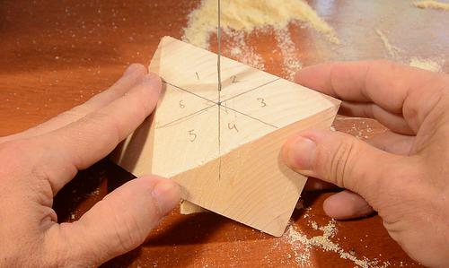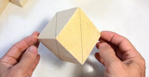 I started by slicing a triangular corner off a piece of square stock, much like I sliced the triangular pyramid corners off my cube.