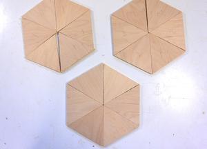 third try (note the two hexagons with a gap on the right). I glued three triangles