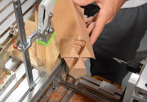 the wood at a 35.26 degree angle on a CNC machine or pantorouter.