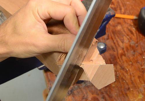 A bit of chiselling out to flatten this plane, which is perpendicular to
