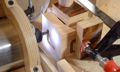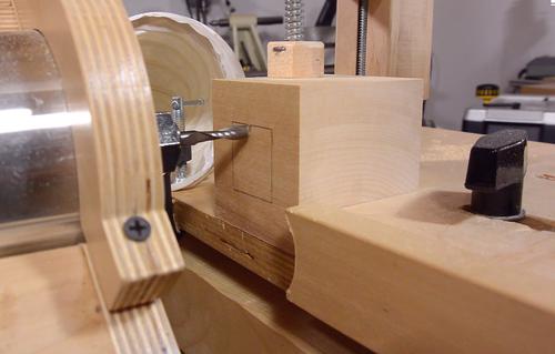 getting caught in the bit, I put a clamp around the cube's sides, so that the cross is