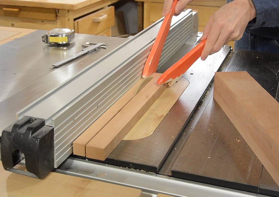 I started by ripping some square stock of maple and mahogany, 2x2 cm.
