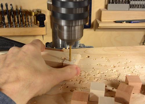 After drilling, I sanded a chamfer on all the cube edges to make them nice to handle.